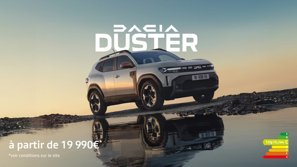 jusqu'au 17 novembre, profitez de Dacia Duster disponible à partir de 19 990 €*. *voir conditions en concessions et sur le site en cliquant ici.