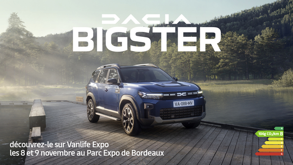 Découvrez le Dacia Bigster sur Vanlife Expo les 8 et 9 novembre au Parc Expo de Bordeaux.